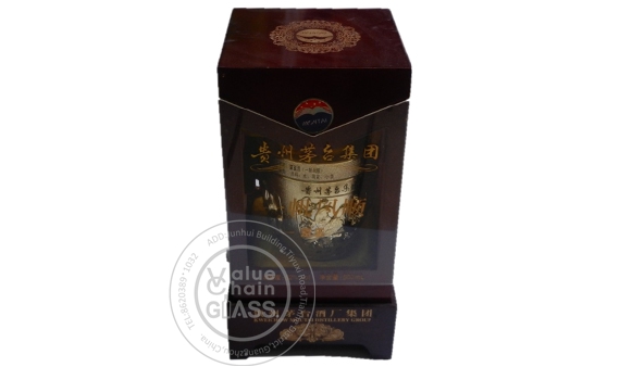 Customize wooden package combine with VAC tray, plastic cover and logo printing will make the brand more outstanding like Grey Goose, Absolute vodka.