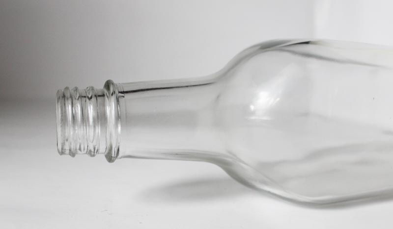 Glass bottle for wine of typical shape